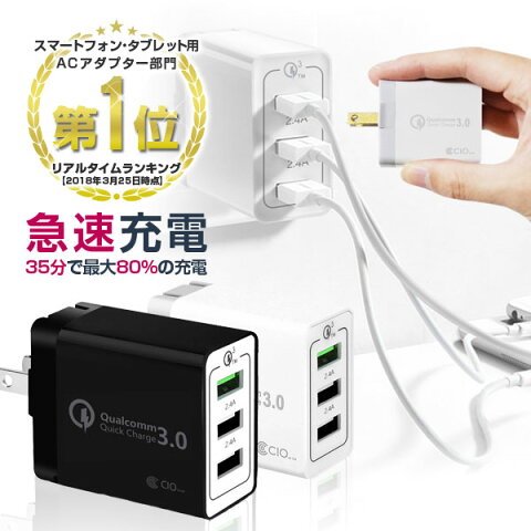 【即日発送】急速充電器 Quick Charge 3.0 USB iPhone 充電器 3ポート ACアダプター Qualcomm QC3.0 Android スマホ充電器 携帯充電器 2.4A コンセント GalaxyS8 Xperia iPad アイフォン エクスペリア
